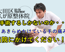 東京大田区久が原整体の 石山です。 今回は【手首の痛み】 この手首の痛み違和感は【腱鞘炎】など一概にはお答えしかねるんですが今回来院した50代男性元々、腰痛とひざの痛みで整体治療中の50代男性なのですが、実はいろいろ […]